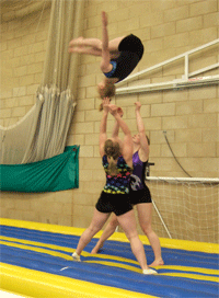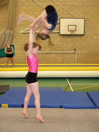 Acrobatic Gymnastics is made up of three different exercises, balance, dynamic and combined. All of the exercises are performed on a sprung floor with no additional apparatus. It is performed in pairs and groups: